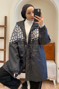Lamelif Nakış Detaylı Mont Siyah