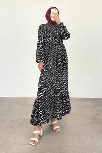 Lamelif Taş Detaylı Tesettür Elbise Siyah