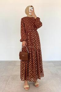 Modalamelif Bel Lastik Puantiye Desen Elbise Acı Kahve