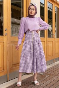 Modalamelif Bel Lastikli Balon Kol Bluz Lila