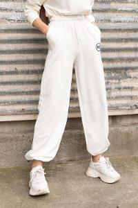 Modalamelif Bel Lastikli Bus Yazı Nakışlı Eşofman Pantolon Beyaz