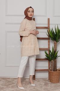 Modalamelif Bel Lastikli Çiçek Dantel Detay Tunik Bej