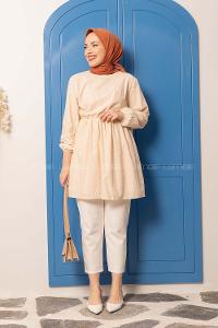 Modalamelif Bel Lastikli Dantel Detay Tunik Bej