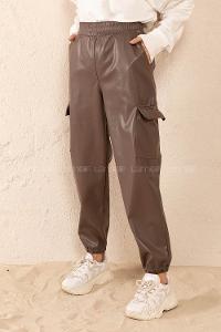 Modalamelif Bel Lastikli Deri Kargo Pantolon Kahve