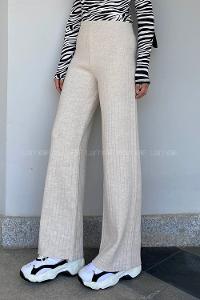 Modalamelif Bel Lastikli Fitil Detaylı Bol Paça Triko Pantolon Krem