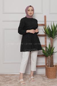 Modalamelif Bel Lastikli Papatya Dantel Detay Tunik Siyah