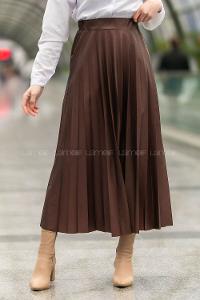 Lamelif Önü Pileli Scuba Kumaş Etek Kahverengi