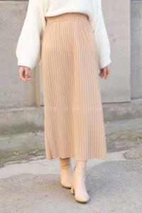 Lamelif Önü Pileli Scuba Kumaş Etek Bej