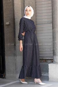 Modalamelif Bel Lastikli Puantiye Elbise Lacivert