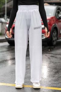 Modalamelif Bel Lastikli Yazı Baskılı Bol Paça Eşofman Beyaz