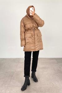 Modalamelif Bel Tünelli Şişme Mont Soft Kahve