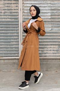 Lamelif Kol Kemerli Trençkot Acı Kahve
