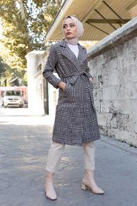 Modalamelif Belden Bağlamalı Ekose Kaban Gri