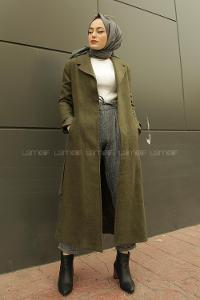 Modalamelif Belden Bağlamalı Kaşe Kaban Haki
