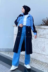 Modalamelif Belden Bağlamalı Kot Garnili Trenç Siyah