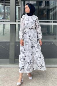 Lamelif Elica Tesettür Elbise Taş Rengi
