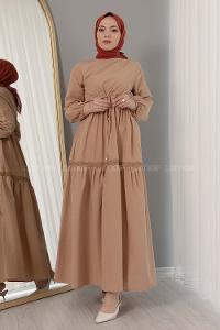 Lamelif Elica Tesettür Elbise Taş Rengi