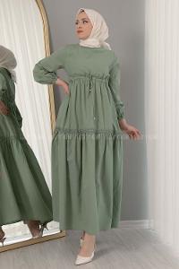 Lamelif Elica Tesettür Elbise Mint Yeşili