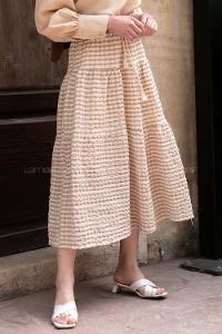 beli bağcıklı gofre ekose desen etek