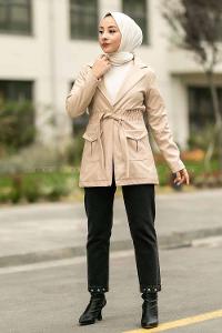 Lamelif Bağlamalı Kaşe Mont Bej