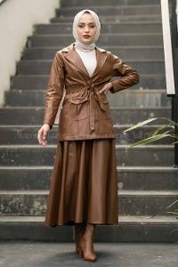 Lamelif Bel Lastikli Bağlama Detaylı Ceket Taba