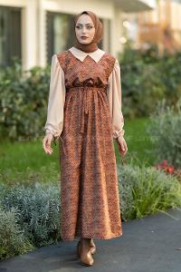 Lamelif Elica Tesettür Elbise Acı Kahve