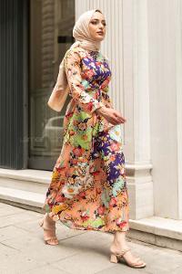 Lamelif Elica Tesettür Elbise Taş Rengi