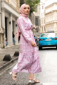 Lamelif Balon Kol Katlı Tesettür Elbise Şeker Pembesi