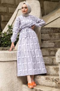 Lamelif Elica Tesettür Elbise Taş Rengi