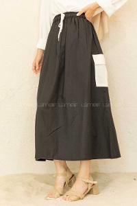 Modalamelif Beli Lastikli Cep Garnili Etek Siyah