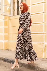 Lamelif Taş Detaylı Tesettür Elbise Siyah