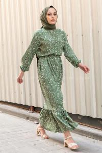 Lamelif Taş Detaylı Tesettür Elbise Haki