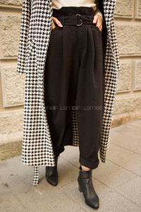Modalamelif Beli Pileli Kemerli D Tokalı Kot Pantolon Siyah