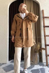 Beli Tünelli Gizli Fermuarlı Kapşonlu Kap