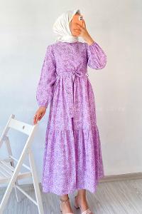 Modalamelif Beli Tunelli Papatya Desen Elbise Lila