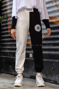 Modalamelif Berkeley Paça Lastikli Çift Renk Eşofman Beyaz-Siyah