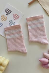Modalamelif Beyaz Çizgili Pudra Soket Çorap