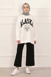 Modalamelif Bisiklet Yaka Alaska Baskı Detaylı Sweat Beyaz