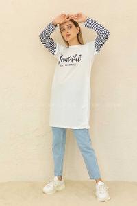 Modalamelif Bisiklet Yaka Beatıful Baskılı T-Shirt Beyaz