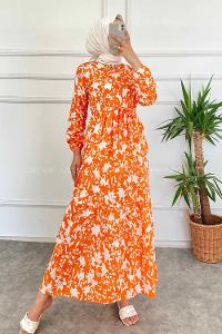 Lamelif Balon Kol Katlı Tesettür Elbise Sarı