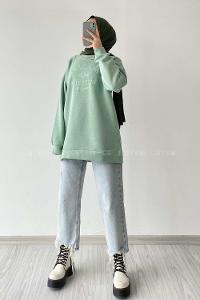 Modalamelif Bisiklet Yaka Calabasas Baskılı Sweat Mint Yeşili