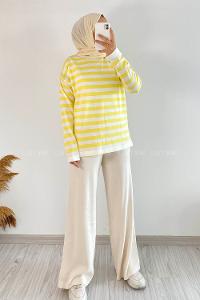 Modalamelif Bisiklet Yaka Çizgili Kazak Sarı