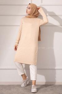 Modalamelif Bisiklet yaka Çizgili Tunik Bej