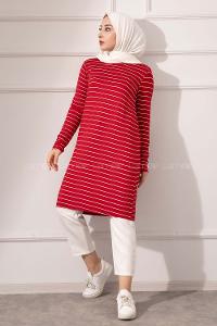 Modalamelif Bisiklet yaka Çizgili Tunik Kırmızı