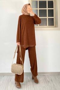 Modalamelif Bisiklet Yaka Duble Kol Yırtmaç Detaylı İkili Takım Kahverengi