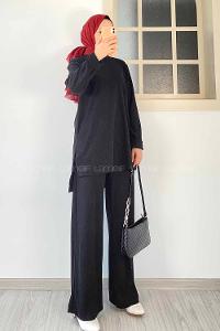 Lamelif Düz İkili Triko Tesettür Takım Siyah