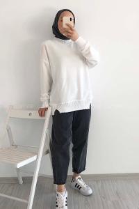 Modalamelif Bisiklet Yaka Düz Renk Desen Tonia Kazak Beyaz