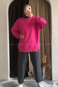 Modalamelif Bisiklet Yaka Düz Renk Desen Tonia Sweat Fuşya