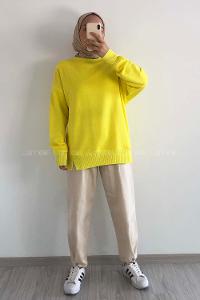 Modalamelif Bisiklet Yaka Düz Renk Desen Tonia Kazak Sarı