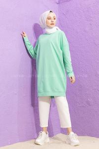 Modalamelif Bisiklet Yaka Düz Renk Sweat Mint Yeşili